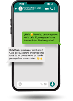Descubre todas las tiendas de Gran Vía de Vigo en las que puedes hacer WhatsApp Shopping. Ponte en contacto con ellas a través de su número de WhatsApp y un vendedor te atenderá de manera exclusiva. Así de fácil y rápido.